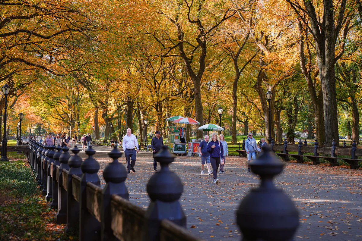 It starts in late September, when the first cool front comes through and the city collectively exhales. The humidity breaks. The light changes angle. People reappear on the streets in layers, holding coffee cups with both hands. Central Park starts turning — slowly at first, then all at once — and the elm trees along the Mall go gold in a way that makes even lifelong New Yorkers stop and take photographs they know won't do it justice.
